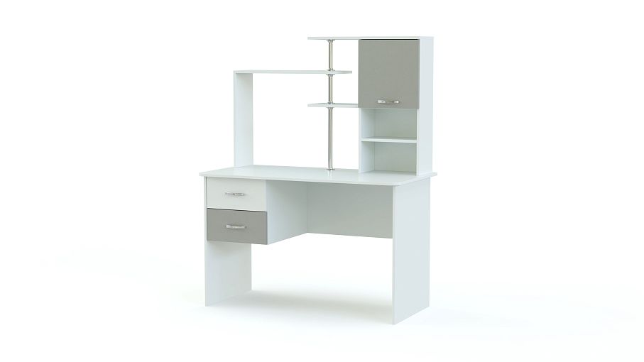 Стол компьютерный Рима ЛДСП BMS выполнен из экологичных материалов и станет отличным выбором для комнаты современного школьника. Просторная, скругленная по углам столешница сможет разместить монитор и письменные принадлежности, а для разнообразных учебных материалов и личных вещей – выдвижные ящики и надстройка с полками и распашным шкафчиком. Спокойные белые тона разбавляют яркие акценты серых вставок. Купить стол компьютерный Рима ЛДСП BMS вы сможете в нашем интернет-магазине по доступной цене.