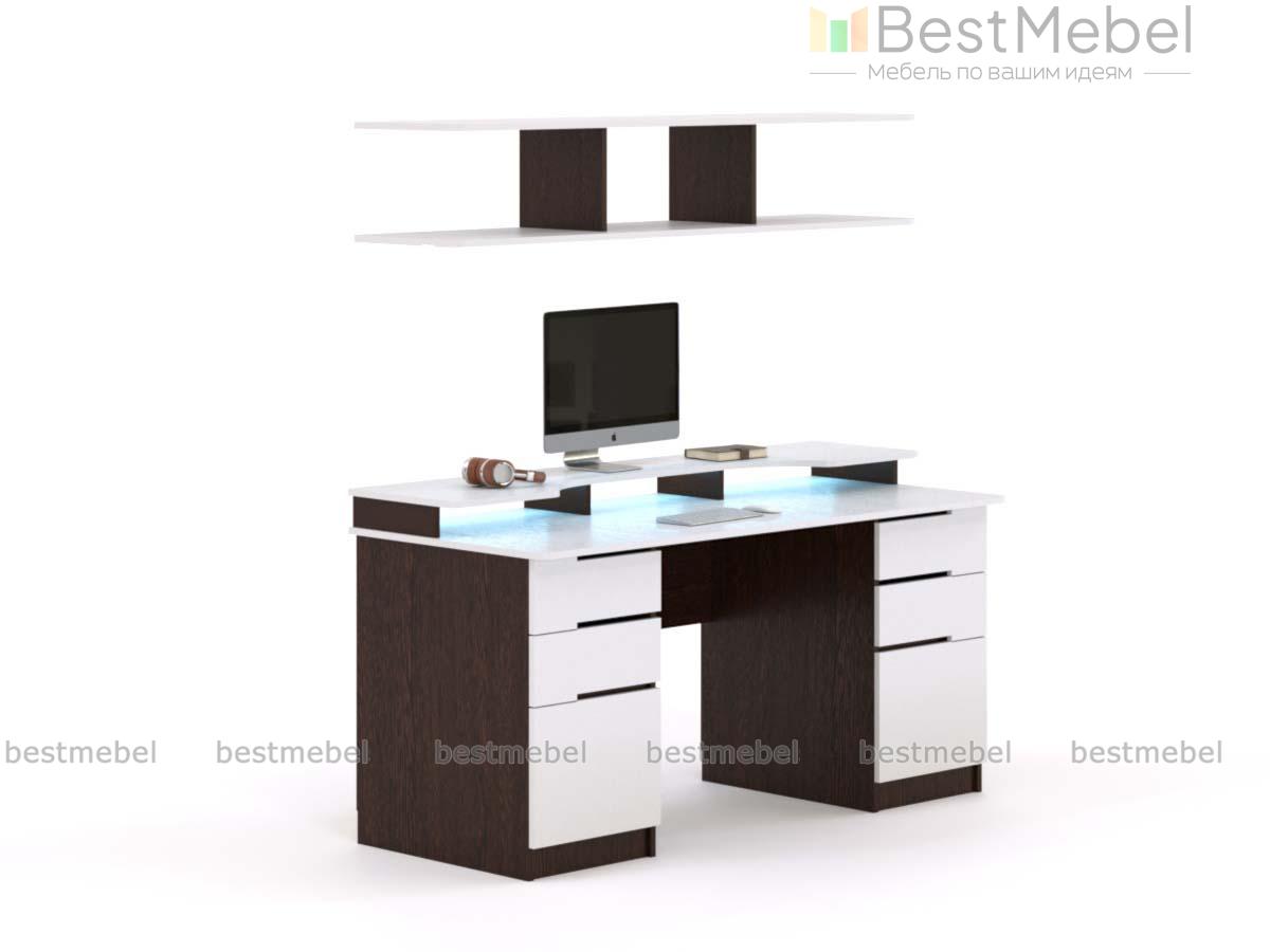 Стол компьютерный с подсветкой Жерар 1 BMS выполнен в черно-белой гамме и отличается ультрасовременным дизайном. Просторная прямоугольная столешница дополнена панелью для клавиатуры и надстройкой, на которой смогут разместиться монитор и периферийные устройства, а для хранения канцелярских мелочей, рабочих или учебных принадлежностей предусмотрены две тумбы с выдвижными ящиками. Особенно футуристичный вид столу придает встроенная светодиодная подсветка. Купить стол компьютерный с подсветкой Жерар 1 BMS приглашаем в наш интернет-магазин.