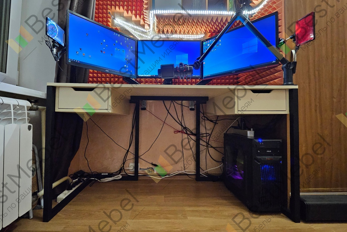 Мне понравился дизайн стола. Делала длину 139 см, без изменения ширины ящиков - для игрового кресла осталось не очень много места. Так что ящики шире не делайте. И вообще лучше делайте по своим размерам, чтобы наверняка - цена сильно не изменится.ЛДСП делают хороший, а вот с каркасом возникли проблемы. 2 раза привозили перекошенный или с несоответствием размеров. На третий раз привезли тоже не 10/10, но эту попытку мы сочли приемлемой, насколько это было возможно. Из плюсов - по рекламациям всё делали очень быстро, буквально в течение недели.