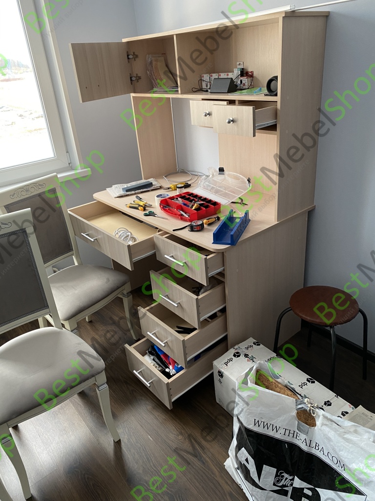 Заказ №884608 от 21.09.2023г. Заказывал для сына старшеклассника, чтобы мог разместить все свои учебники, тетради и прочий свой хлам. Внесли свои модификации по дизайну и размерам.В итоге всё получилось шикарно (вот только надо было подставку под системный блок закруглить, но это моя ошибка - не сообразил). Сделали и доставили в течении 2-х недель, при этом доставку согласовали в удобную мне дату. Собирал сам, проблем не было, все отверстия сошлись, фурнитура в полном комплекте.