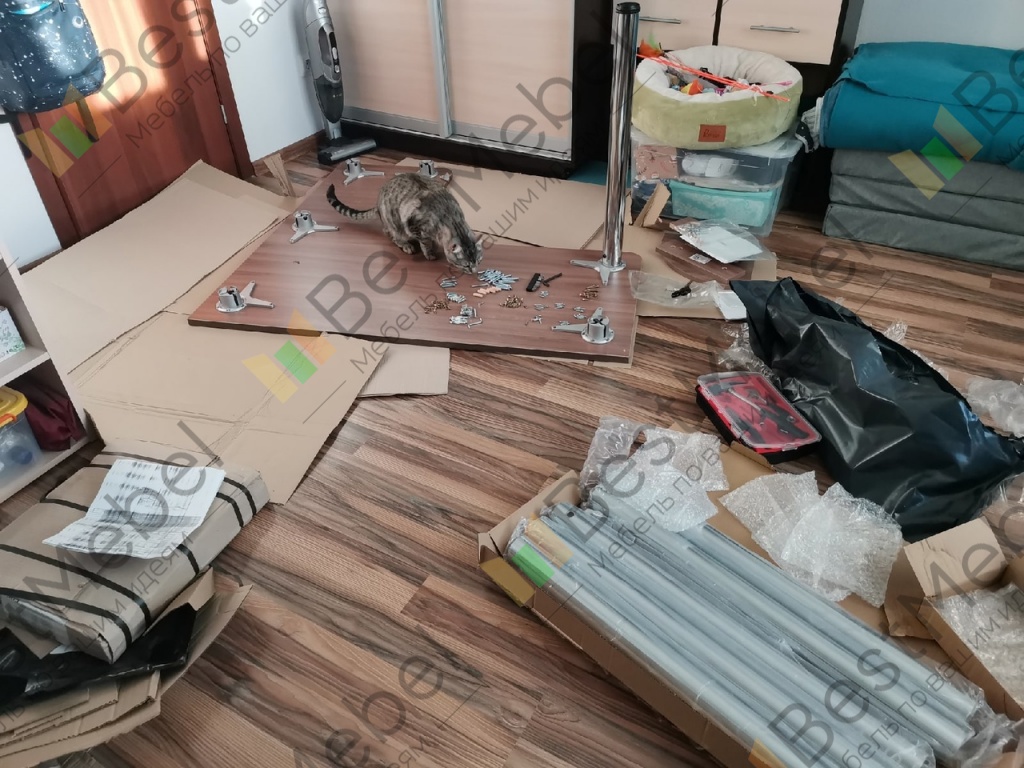 Наконец дошли руки до отзыва. Стол был куплен еще в январе этого года, собирала сама в одиночку, ну кот еще помогал, как мог)), сложностей не возникло, разве что шуруповерт был бы не лишним, но и так нормально. За все время использования никаких нареканий, стол крайне удобный, для тех кто дома по долгу сидит за компьютером и порой хочется вытянуть ножки)))Хочу выразить огромнейшую благодарность за терпение, учатие и содействие отделу проектирования BestMebelShop, поименно увы не знаю кто помогал, но все пожелания были учтены и размеры полностью соответствуют заявленному мною макету, что для меня было критично поскольку живя в квартире-студии мебель размещается по принципу "тетриса" ни 1 кв.см. не должно зазря пропадать! Подставка под системный блок также удобна и проста в сборке, в любой момент можно подвинуть системник, если нужно убраться или что-то переключить, а не сгибаться в три погибели и лезть под стол.)