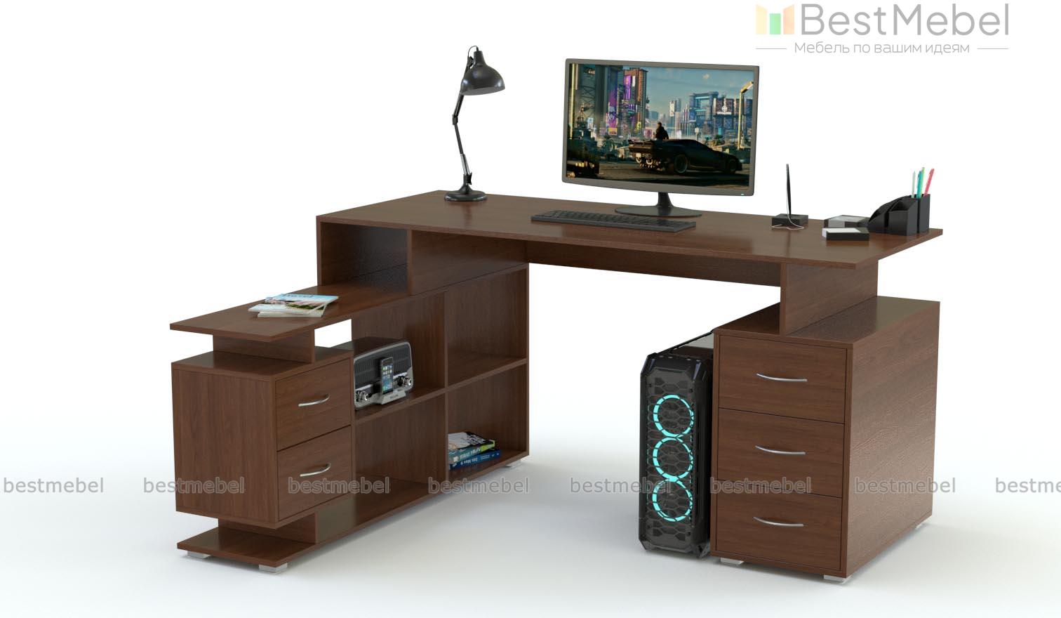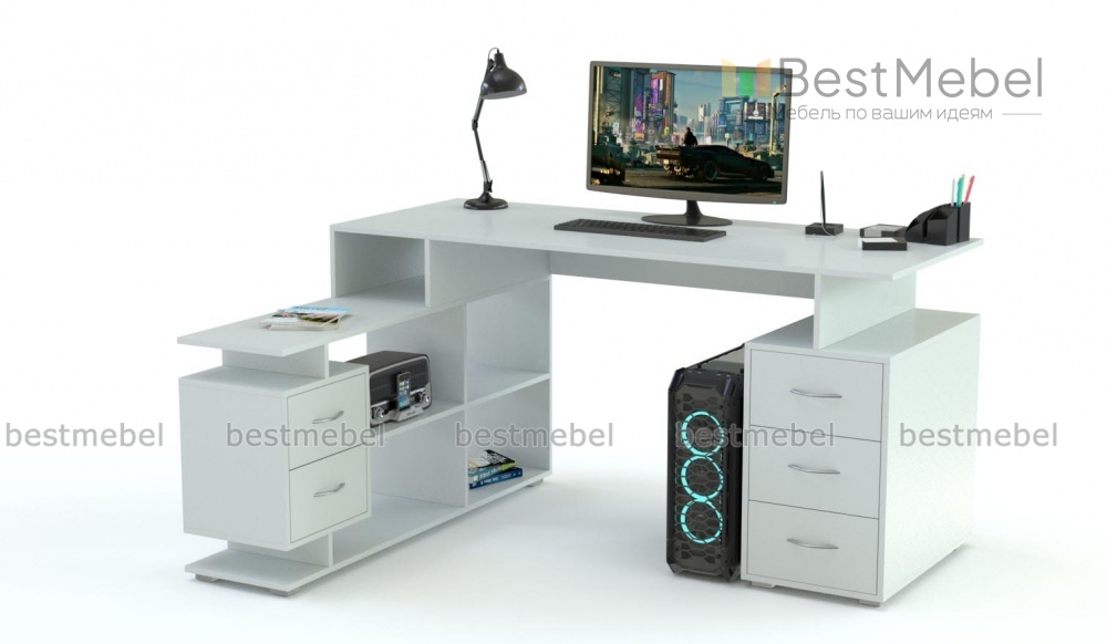 Угловой компьютерный стол Эн-15 BMS станет выбором тех, кто ценит функциональность и минималистичный современный дизайн. Модель позволит сэкономить полезную площадь и разместить в зоне быстрого доступа все необходимое для работы или учебы. Прямоугольная столешница опирается на классическую тумбу с выдвижными ящиками для канцелярских мелочей и широкую, оборудованную двумя ящиками и нишами разной высоты. Купить угловой компьютерный стол Эн-15 BMS и рационально подойти к организации пространства вам поможет наш интернет-магазин.