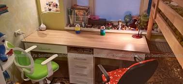 Прекрасный стол для двойняшек. Единственный сайт, где удалось максимально адаптировать изделие под интерьер. Был выбор длинны и ширины столешницы. Варианты фасадов. Вариантность всех деталей - дала возможность максимально комфортно вписать стол в существующий интерьер. Прежде, чем сделать заказ на Best Mebel, пересмотрели массу других сайтов, рассматривали изготовление стола на заказ. Очень довольны. Используем стол уже 5 месяцев. Все прекрасно.