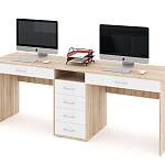 Письменный стол Джейн-8Я BMS, выполненный в популярном сочетании белого и древесных тонов, гармонично впишется в домашний интерьер и поможет организовать рабочие места сразу для двух человек. Практичное дополнение молодежной комнаты, стол оборудован просторной столешницей с двумя выдвижными ящиками для мелочей и разделен расположенной по центру тумбой с ящиками и нишей. Купить письменный стол Джейн-8Я BMS и эффективно использовать пространство вам поможет наш интернет-магазин.