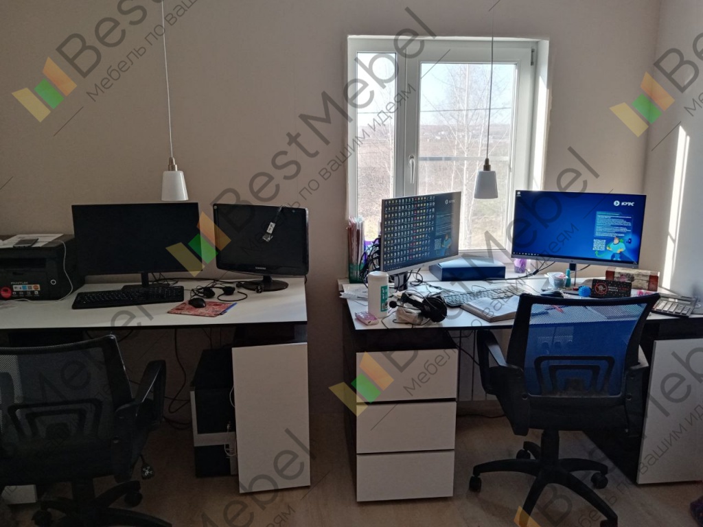 Заказ 00000490859, изделие ЭСКИЗ №00000490859 Письменный стол Кварта BMS (1500х760х650)Очень удобные и функциональные столы, заказывали для рабочего кабинета.Достаточно места для хранения нужных документов и файлов, также очень удобно для использования 2х мониторов.