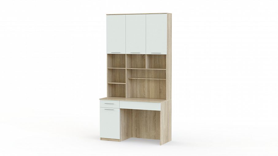 Письменный стол Плато 4 BMS – практичное решение, позволяющее учесть особенности планировки и эффективно использовать пространство. Комбинированная модель оборудована однотумбовым столиком, удобным для работы за ноутбуком, открытыми полками для книг и декоративных мелочей и распашными отделениями с глухими фасадами. Популярное сочетание светлых древесных тонов корпуса с белым фасадом делает модель универсальной. Купить письменный стол Плато 4 BMS вы сможете в нашем интернет-магазине по доступной цене.