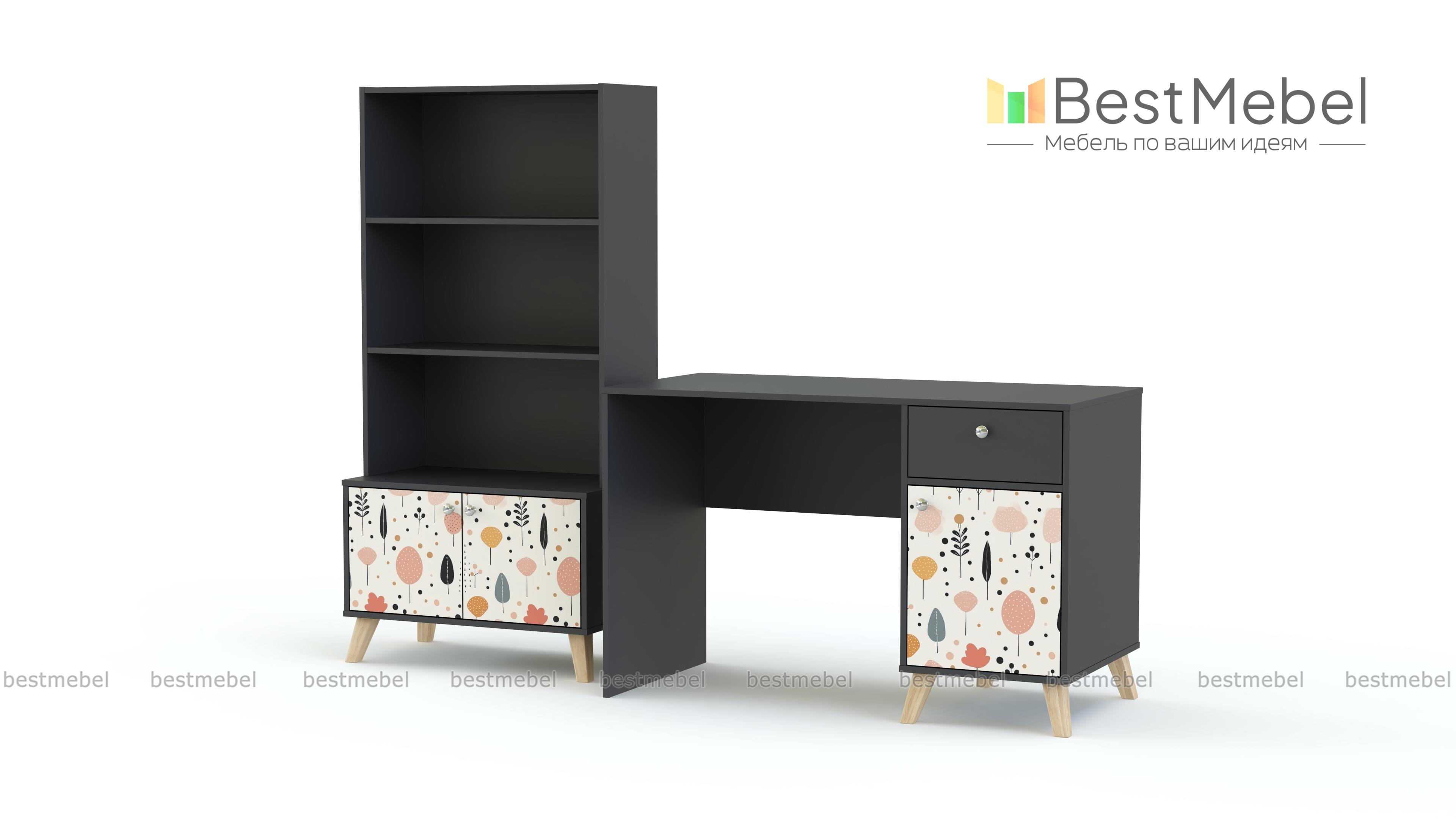 Стол письменный Эльза 7 BMS дополнен стеллажом, на котором в порядке разместятся учебные пособия, канцелярские принадлежности и приятные мелочи. Классическая прямоугольная модель с тумбой и просторной рабочей поверхностью выглядит легкой за счет высоких ножек. Универсальную светлую палитру композиции разбавляют нежные акценты фотопечати на распашных фасадах. Купить стол письменный Эльза 7 BMS вы сможете в нашем интернет-магазине, самостоятельно подобрав размеры и цветовую гамму.