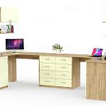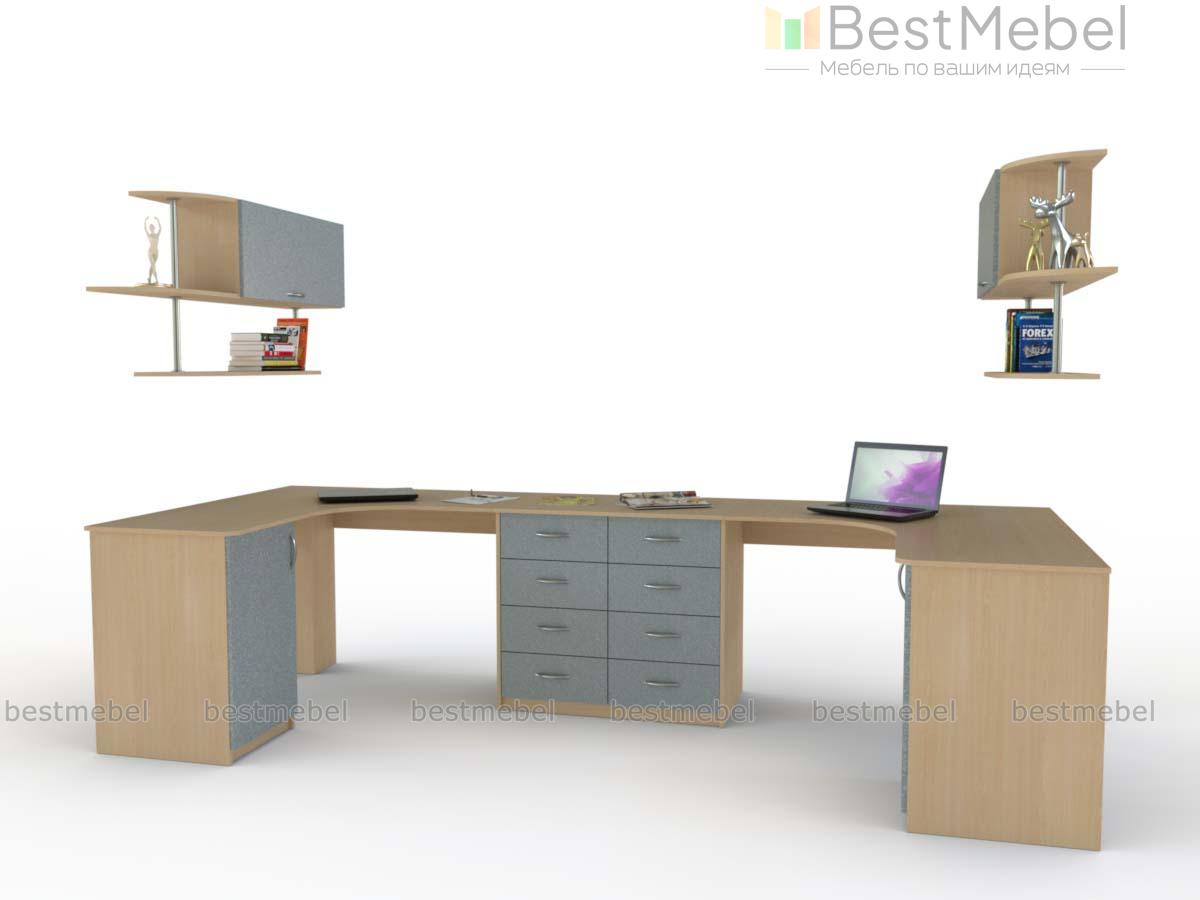 Угловой письменный стол для двоих Виктория 26 BMS – это практичная модель П-образной формы, которая сможет разместиться вдоль окна по всей ширине комнаты. Просторная столешница безопасно скруглена по углам и удобна для письма и работы за компьютером, а для хранения канцелярских мелочей предусмотрены четыре тумбы с выдвижными ящиками. Визуально облегчает интерьер сочетание древесного цвета и глянца с оттенком металлик. Купить угловой письменный стол для двоих Виктория 26 BMS с учетом необходимых параметров приглашаем в наш интернет-магазин.
