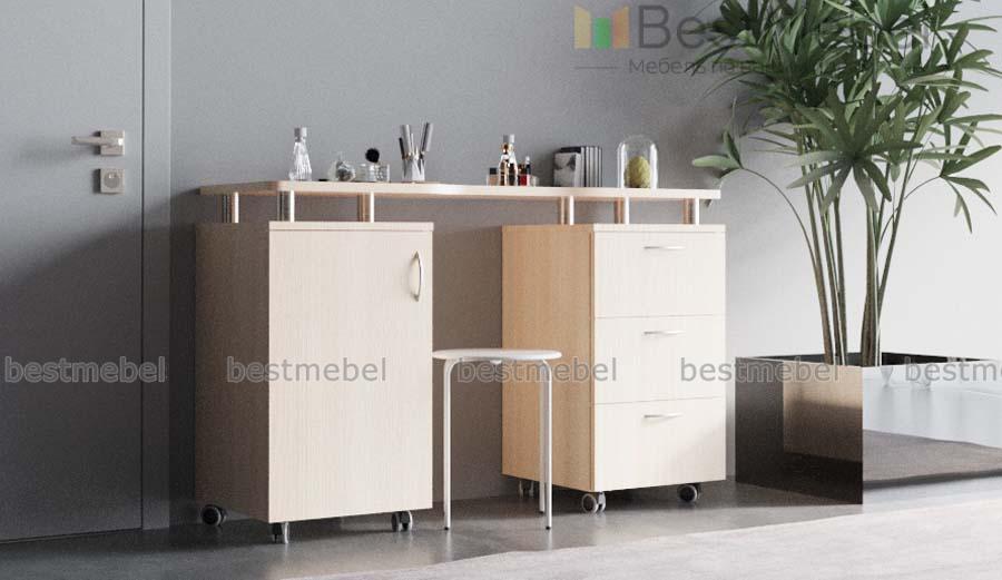 Маникюрный стол Балтик BMS – это двухтумбовая модель с просторной, скругленной по углам столешницей. Столик позволит оборудовать комфортное рабочее место, разместив под рукой все необходимые инструменты и расходные материалы в трех выдвижных ящиках и распашном отделении с полками. Легкость перемещения обеспечат конструкции надежные колесные опоры. Купить маникюрный стол Балтик BMS для меблировки современного салона вы сможете в нашем интернет-магазине по доступной цене.