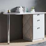 Маникюрный стол Осло BMS – практичное дополнение меблировки современного салона и элемент дизайна. Оригинальный столик максимально лаконичен по форме, компактен и устойчив за счет регулируемой хромированной опоры. Безопасно скругленную столешницу дополняет вместительная тумба с тремя выдвижными ящиками для хранения материалов и инструментов, с трех сторон декорированная экокожей с каретной стяжкой. Купить маникюрный стол Осло BMS и обустроить комфортное рабочее место вам поможет наш интернет-магазин.