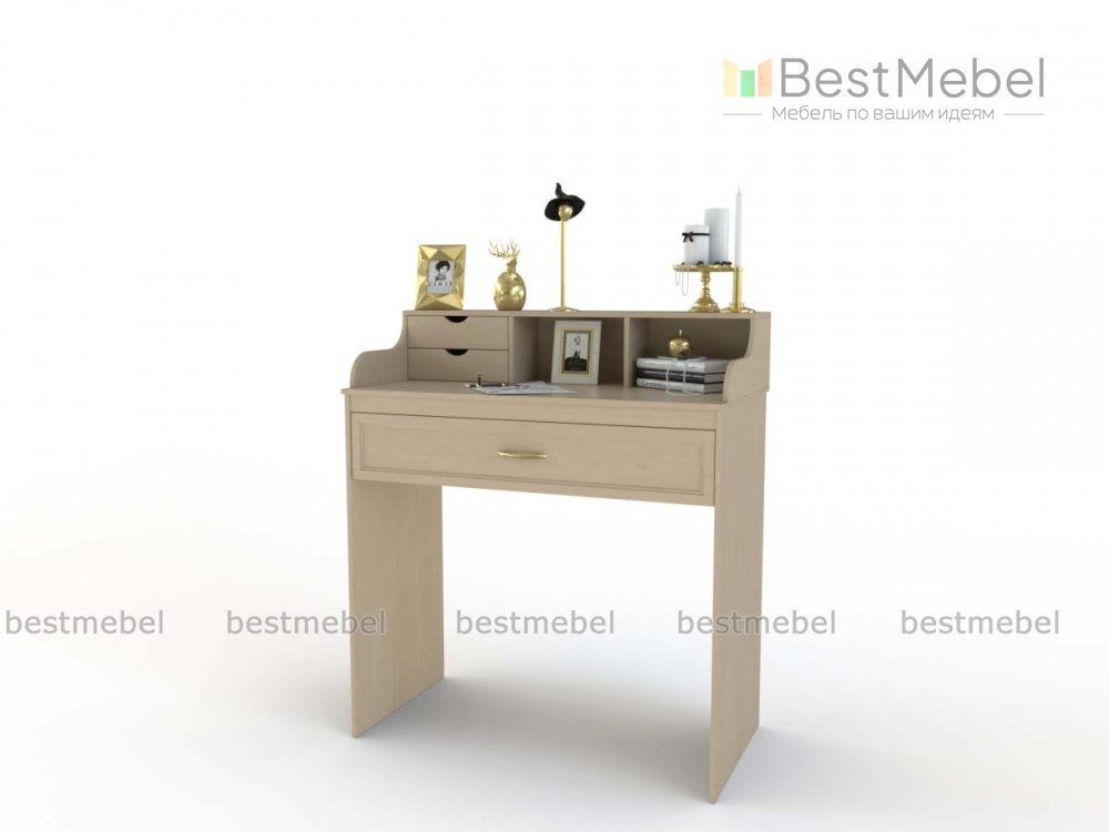 Стол туалетный Гера 25 BMS отличается изящным классическим дизайном и компактными размерами. Столик станет прекрасным выбором для небольших спален и сделает уход за собой максимально комфортным. Модель оборудована просторным выдвижным ящиком для хранения косметики и аксессуаров, а столешницу дополняет надстройка с фигурно вырезанными боковинами, нишами и двумя мини-ящиками. Выполненный в светлых тонах, стол декорирован легкой фрезеровкой. Купить стол туалетный Гера 25 BMS приглашаем в наш интернет-магазин.