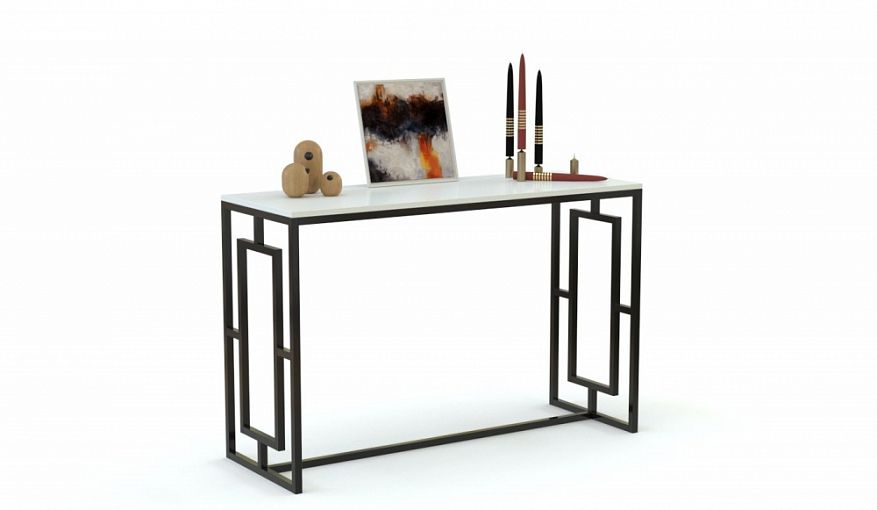 Столик консольный Клора 12 BMS с фигурным металлическим каркасом станет украшением лофта или интерьера в индустриальном стиле. Модель оборудована просторной прямоугольной столешницей нейтрального белого цвета, на которой достаточно места для косметики и аксессуаров. Благодаря высоким эксплуатационным свойствам материалов столик прост в уходе и будет долго радовать вас эстетичным внешним видом. Купить столик консольный Клора 12 BMS вы сможете в нашем интернет-магазине, по желанию изменив цвет и размеры.