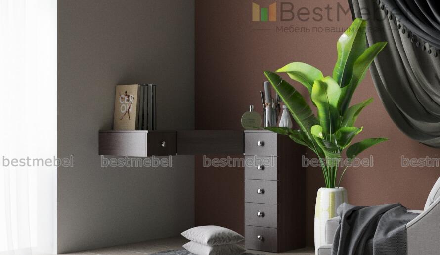 Трюмо угловое Олан-1 BMS станет находкой для помещений, в которых важна экономия пространства. Миниатюрная угловая конструкция частично крепится к стене, опираясь на пол узкой тумбой с выдвижными ящичками для мелочей. В закрытом виде трюмо можно использовать в качестве рабочего столика, а под столешницей располагается удобный выдвижной ящик для хранения. Выполненная в древесных тонах, модель органично впишется в классические и современные интерьеры. Купить трюмо угловое Олан-1 BMS приглашаем в наш интернет-магазин быстро и просто.