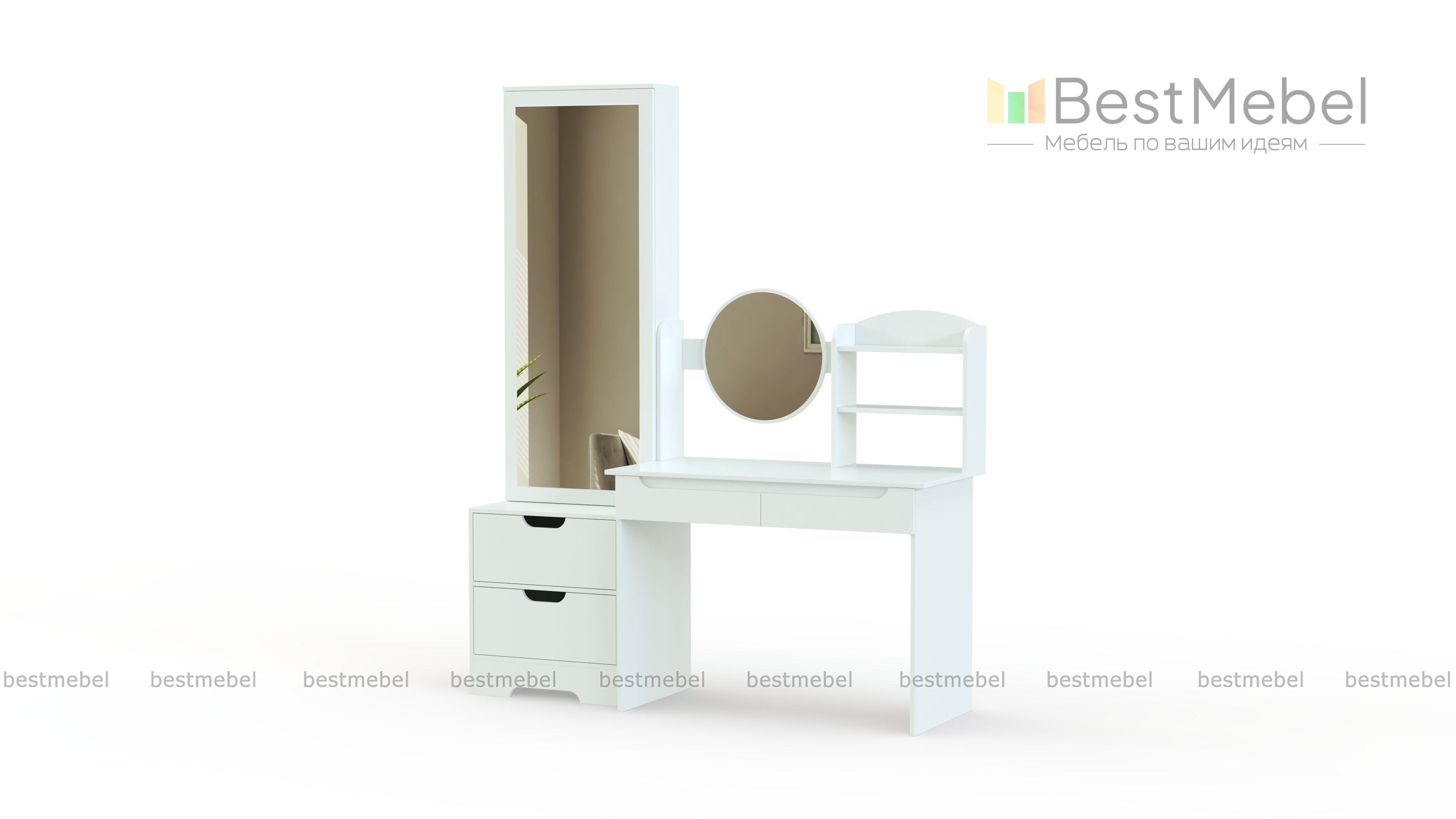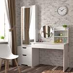 Туалетный стол Франко 1 BMS гармонично впишется в интерьер современной спальни и разместит под рукой все необходимые уходовые средства и аксессуары. Модель с просторной прямоугольной столешницей оборудована двумя выдвижными ящиками для мелочей, надстройкой с открытыми полками, круглым зеркалом и дополнена тумбой с зеркальным шкафчиком. Компактная и визуально легкая композиция выполнена в универсальном белом цвете. Купить туалетный стол Франко 1 BMS по лучшей цене вы сможете в нашем интернет-магазине.