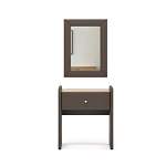 Туалетный стол Миранда 5 BMS составит интересный комплект с мягкой кроватью. Столик отличается компактными размерами и классической конструкцией с одним глубоким выдвижным ящиком, в котором будут всегда под рукой косметика и украшения. Выполненная в обивке из экокожи, модель дополняется стеклянной столешницей и объемным кубическим пуфом с декоративной стяжкой. Купить туалетный стол Миранда 5 BMS с возможностью изменения размеров приглашаем в наш интернет-магазин.