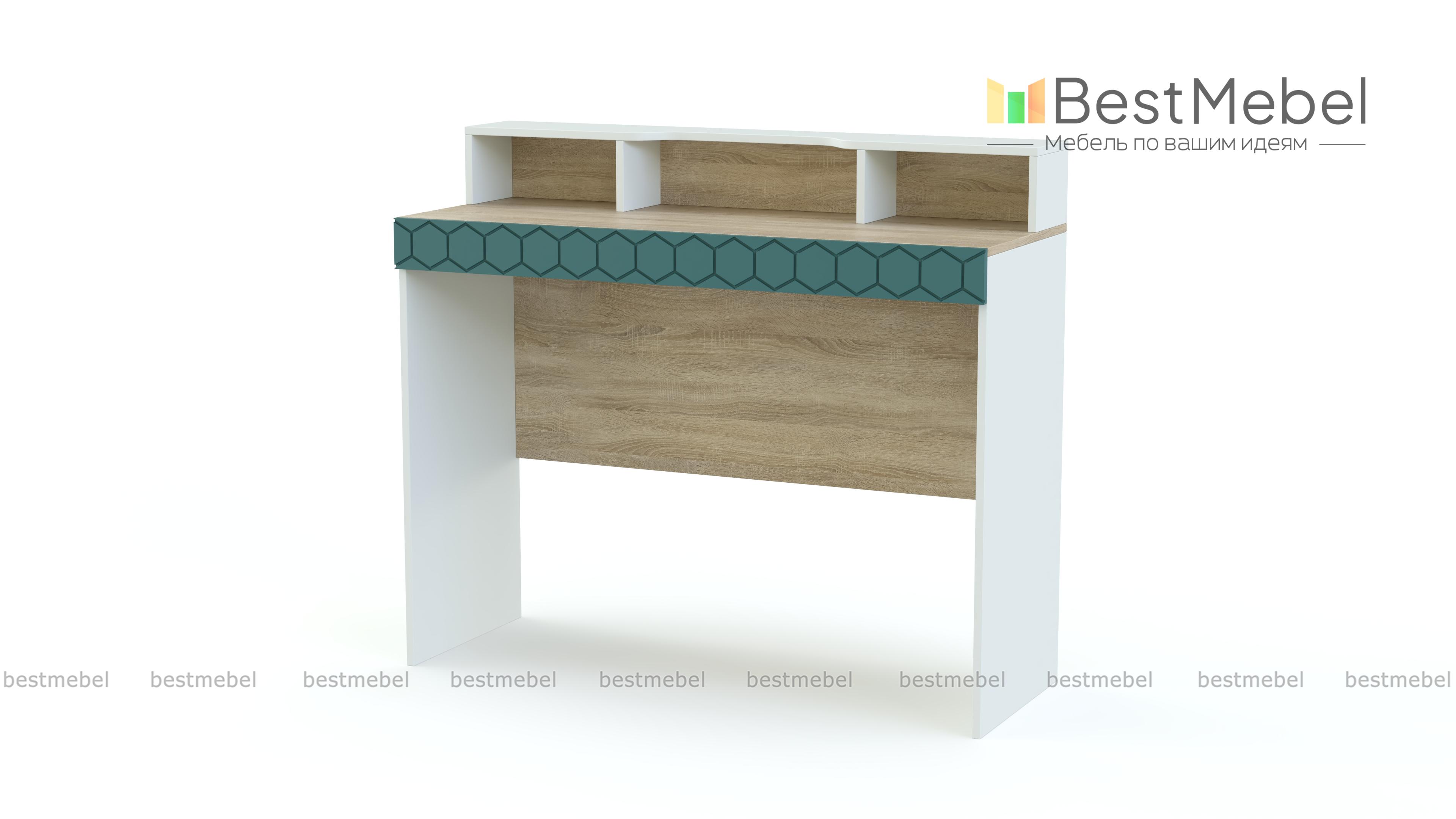 Туалетный стол Монте 5 BMS выполнен в древесных тонах теплой светлой гаммы и декорирован по фасаду накладкой с оригинальным фрезерованным орнаментом. Для удобного хранения мелочей элегантный столик оборудован широкой двухуровневой столешницей с полочкой, к которой крепится зеркало, и вместительными нишами. Износостойкость поверхностей и простота ухода помогут надолго сохранить модели эстетичный вид. Купить туалетный стол Монте 5 BMS и сделать спальный интерьер функциональнее вам поможет наш интернет-магазин.