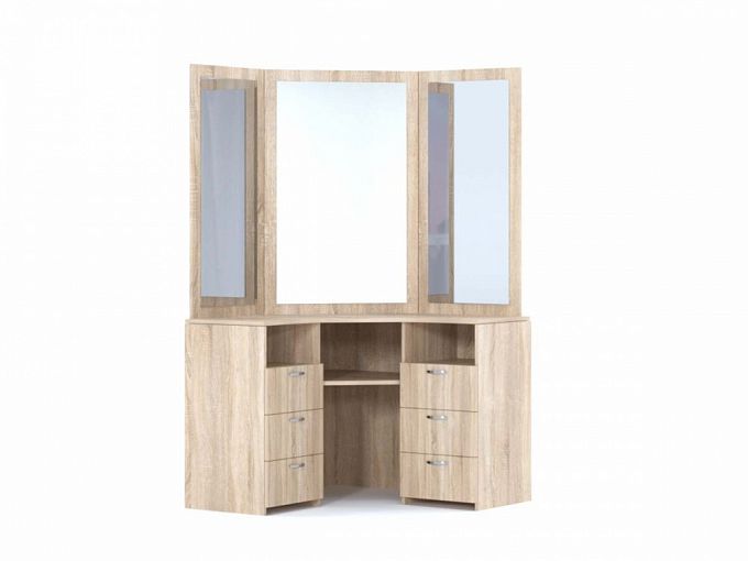 Туалетный стол угловой Софья 8 BMS выполнен в натуральных оттенках под массив дерева и отличается нарочитой простотой. Модель станет прекрасным выбором для современных интерьеров в стиле лофт, а выгодно использовать особенности планировки поможет практичная конструкция. Компактный по размеру, столик оборудован двумя тумбами с выдвижными ящиками и нишами для хранения мелочей и трехстворчатым зеркалом, удобным для нанесения макияжа. Купить туалетный стол угловой Софья 8 BMS приглашаем выгодно в наш интернет-магазин.