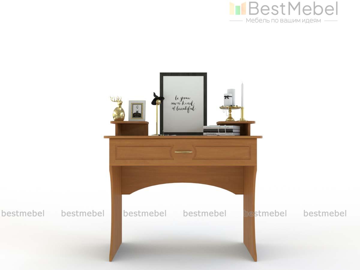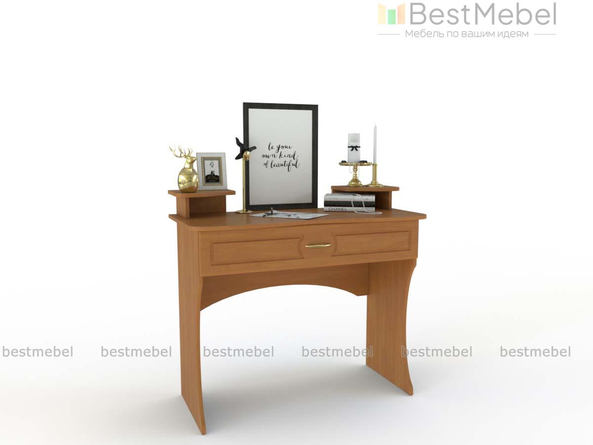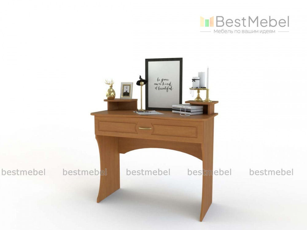 Туалетный столик Афродита 10 BMS выполнен в классическом стиле и гармонично дополнит меблировку элегантной спальни в теплых древесных тонах. Модель с фигурно вырезанными опорами оборудована эргономичной столешницей с вместительным ящиком для мелочей и двумя угловыми надстройками с полочками и нишами. Фасад ящика декорирован неброской фрезеровкой. Купить Туалетный столик Афродита 10 BMS для комфортного ухода за собой вы сможете недорого в нашем интернет-магазине.