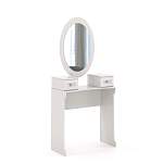 Столик Алиса-11 BMS дополнит изящную модульную детскую в классическом стиле. Стол оборудован всем необходимым юной моднице для ухода за собой – большим овальным зеркалом, столешницей с эргономичным вырезом и двумя выдвижными ящичками для украшений и аксессуаров. Модель выполнена в нежной белой гамме и располагается на устойчивых широких опорах, зеркало закреплено на фигурно вырезанной панели. Купить столик Алиса-11 BMS приглашаем в наш интернет-магазин.