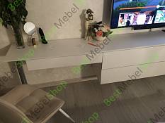Туалетный столик Хельга BMS – простое и оригинальное решение для небольшой современной спальни, которое поможет не только разместить домашний текстиль и аксессуары, но и оформить зону ТВ, оборудовать рабочее место или туалетный столик. Подвесной комод с четырьмя выдвижными ящиками дополнен просторной столешницей с ящичком для мелочей и значительно экономит пространство. Купить туалетный столик Хельга BMS, выполненный в нейтральных светлых тонах, приглашаем в наш интернет-магазин.