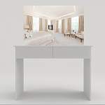 Стильный столик, белоснежные глянцевые поверхности которого подчеркивают элегантную простоту дизайна. При удлиненной столешнице он имеет небольшую стандартную ширину и при размещении вдоль стены не займет много места. Наличие двух просторных выдвижных ящиков позволит содержать в порядке косметические средства и аксессуары, а причесываться и делать макияж перед большим навесным зеркалом будет настоящим удовольствием.