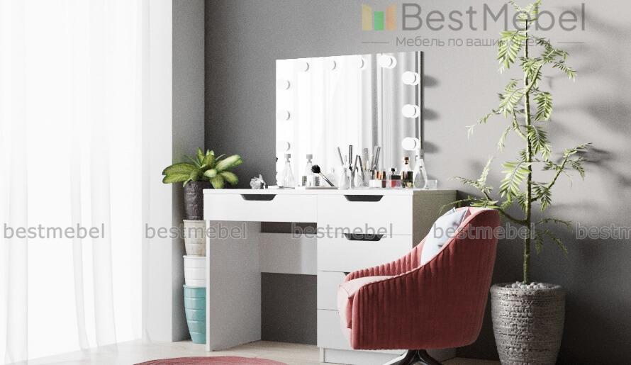 Ранее приобрёл Туалетный столик Хлоя 15 BMS в вашем магазине для дочери в комнату ей 14 лет, она выбрала сама. Столик актуально удобен и не дорог, с интересным дизайном дочки понравился, а ещё её удивила подсветка зеркала и большое количество выдвижных полок. Сборку делал не сам а воспользовался приглашением специалиста по рекомендации BestMebelShop. Рекомендую к покупки для ребёнка!