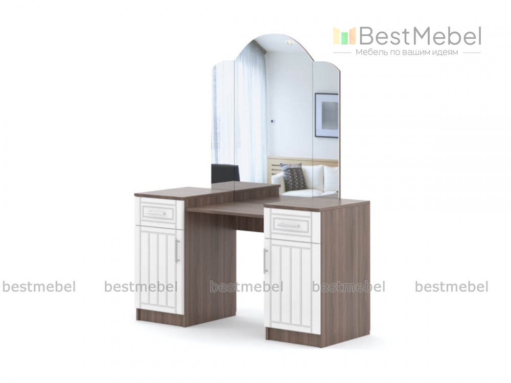 Туалетный столик Мишель BMS станет элегантным дополнением спального гарнитура в классическом стиле. Столик выполнен в древесных тонах с легкой патиной, декорирован фрезеровкой и изящными ручками-скобами. Комфортный уход за собой обеспечит большое трехстворчатое зеркало с фигурно вырезанным верхом, а для хранения косметики, украшений и аксессуаров предусмотрены две тумбы с выдвижными ящиками и распашными отделениями. Купить туалетный столик Мишель BMS по лучшей цене вы сможете в нашем интернет-магазине.