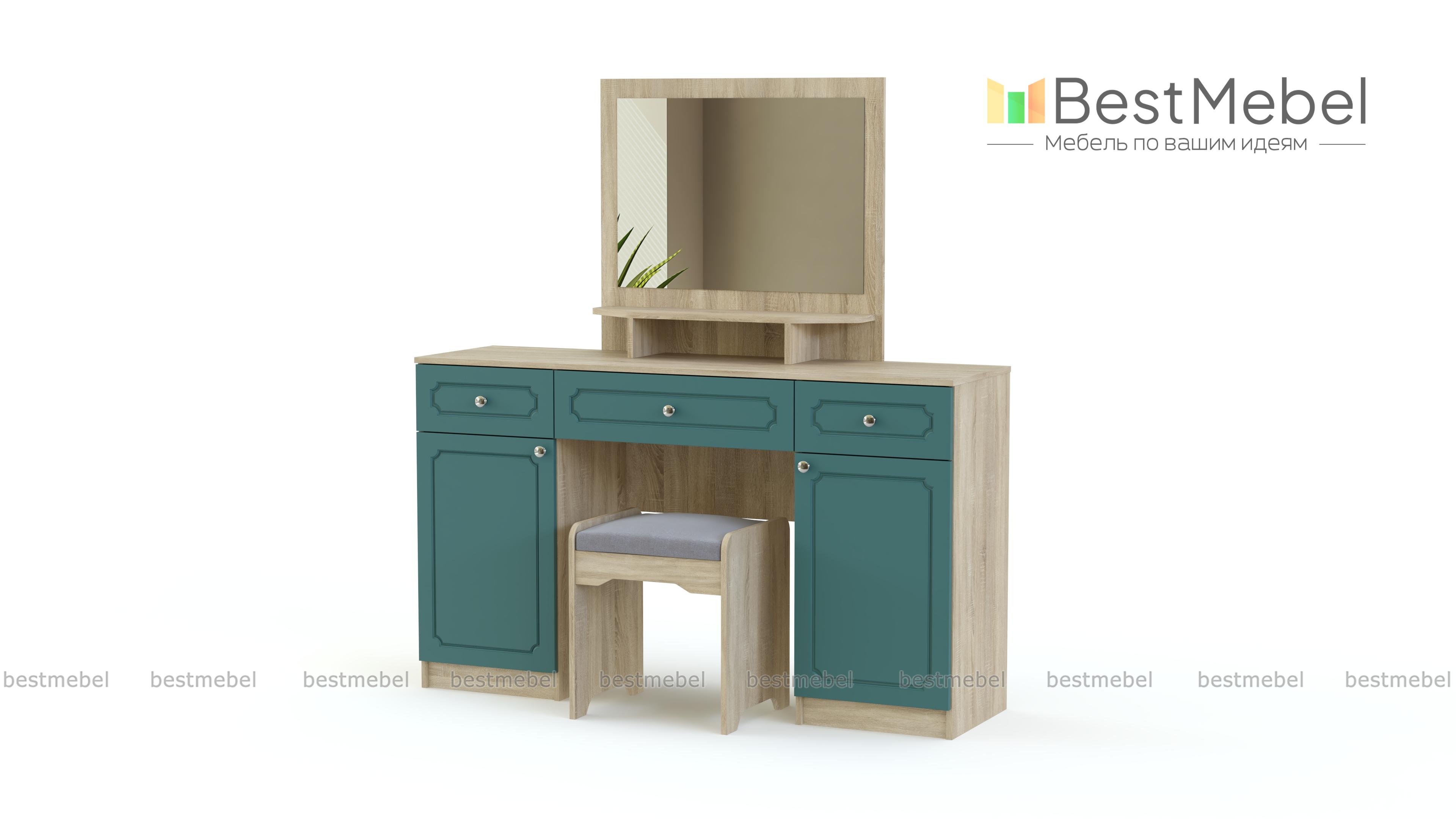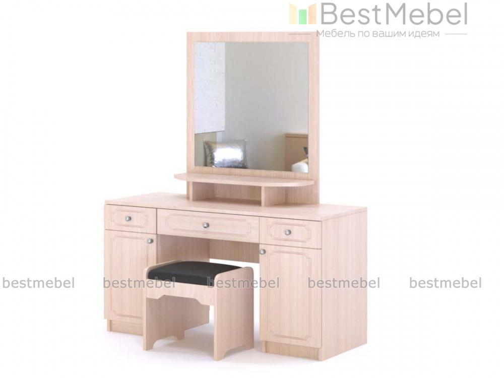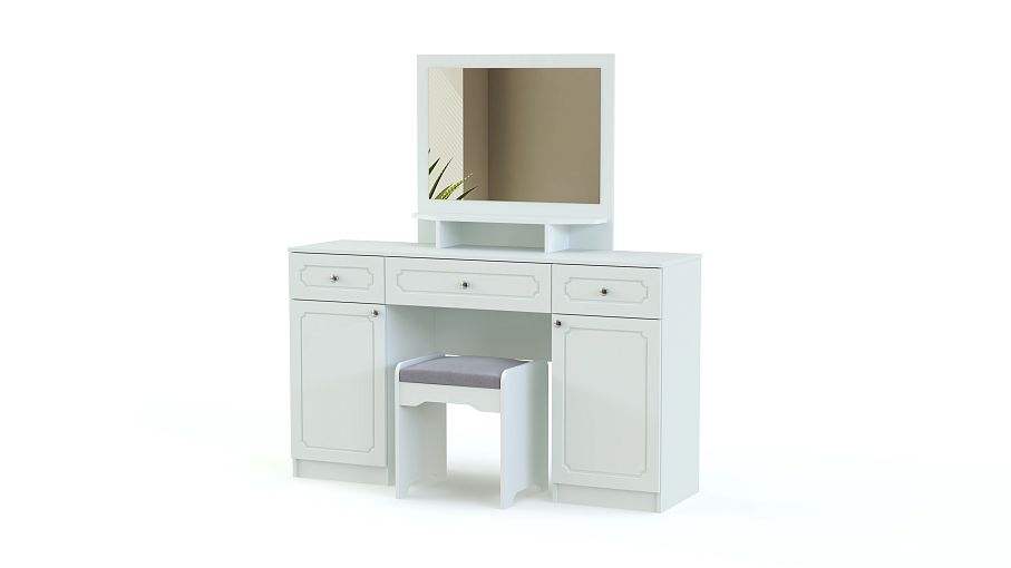 Туалетный столик Труди BMS поможет вам создать комфортный спальный интерьер в классическом стиле. Компактный столик, выполненный в светлых тонах, отличается изящными формами и декорирован по фасаду фрезеровкой. Модель оборудована тумбой с выдвижным ящиком и распашным отделением, а также фигурно вырезанным зеркалом, за которым скрыты полки для уходовых средств. Купить туалетный столик Труди BMS и разместить под рукой все необходимые мелочи вы сможете с помощью нашего интернет-магазина.