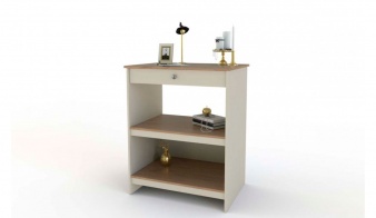 Туалетный столик Вико 5 BMS отличается компактными размерами и практичностью конструкции. Оборудованная двумя просторными полками и столешницей с выдвижным ящичком, открытая модель может выполнять роль тумбы и разместить книги, уходовые средства, аксессуары и прочие мелочи. Лаконичный дизайн и нейтральное сочетание белого и древесного тонов делают столик универсальным. Купить туалетный столик Вико 5 BMS для небольшой современной спальни приглашаем недорого к нам в интернет-магазин.