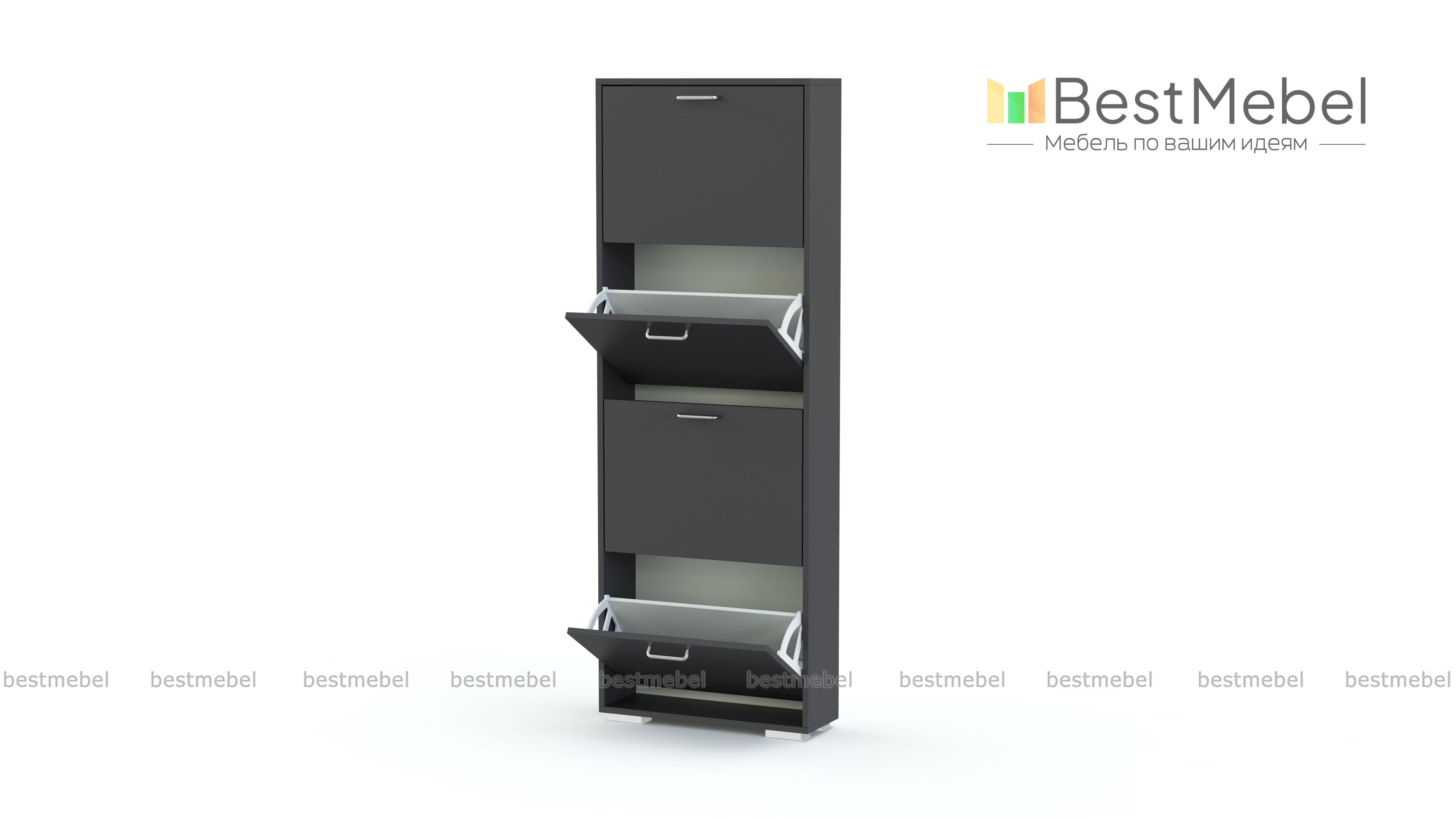 Обувница Анри 3 BMS отличается хорошей вместительностью при компактных размерах и универсальным современным дизайном. Четыре отделения откидной конструкции легко разместят всю повседневную обувь даже в небольшом помещении. Высокая напольная тумба из ламинированной ДСП — прочная, надежная и недорогая, на гладкие фасады установлены удобные ручки-скобы. Купить обувницу Анри 3 BMS в любом размере и оттенке из каталога приглашаем к нам в интернет-магазин.