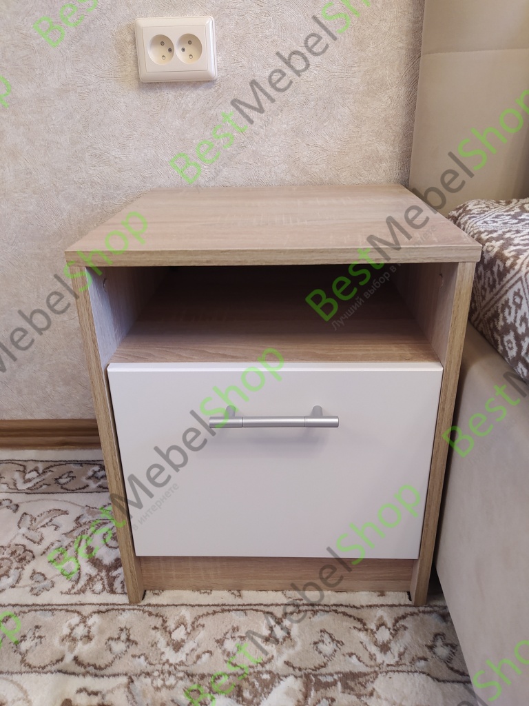 Заказали две тумбочки по своим размерам в спальню, цвет дуб сонома/белый шагрень. Привезли быстро, легко собрали сами, покупкой довольны. Заказ 820035