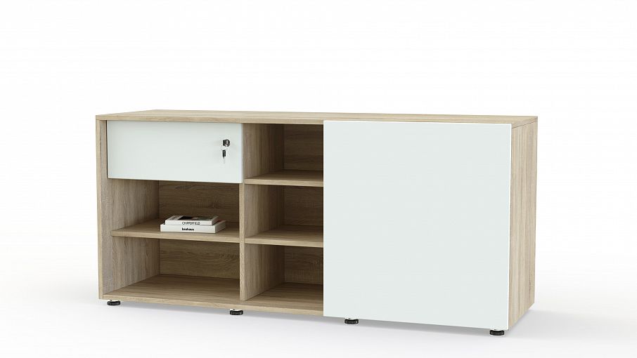 Тумба комбинированная Гиппиус 1 BMS гармонично дополнит современный офисный интерьер и разместит документы, оргтехнику и личные вещи сотрудника. Модель оборудована широкой столешницей, глухим распашным отделением, открытыми полками и выдвижным ящиком, закрывающимся на ключ. В оформлении сочетаются актуальные цвета – белый и теплый древесный оттенок. Купить тумбу комбинированная Гиппиус 1 BMS и обустроить комфортную рабочую зону вам поможет наш интернет-магазин.