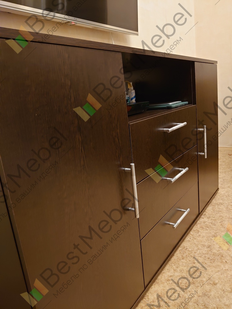 Заказывал тумбу Мишель в этом магазине по своим размерам 1400х850х450 в цвете Венге Цава (заказ №00000888634). Понравилась возможность визуализировать изделие до покупки и вносить изменения в конструктив — попросил добавить третий выдвижной ящик. Изготовили и доставили в кратчайшие сроки. Упаковано хорошо, панели и прочие детали без следов повреждения. Собирал сам. Справился, в комплекте шла схема сборки, но хотелось бы, чтобы клали ещё какую-нибудь инструкцию более подробную. Крепежа хватило.В целом всем доволен. Смотрится отлично, вместительна, сочетает в себе функции и комода. И телевизор при необходимости можно поставить, но он у меня уже на кронштейне был)Спасибо большое магазину за качественную и функциональную мебель, теперь знаю, к кому обращаться