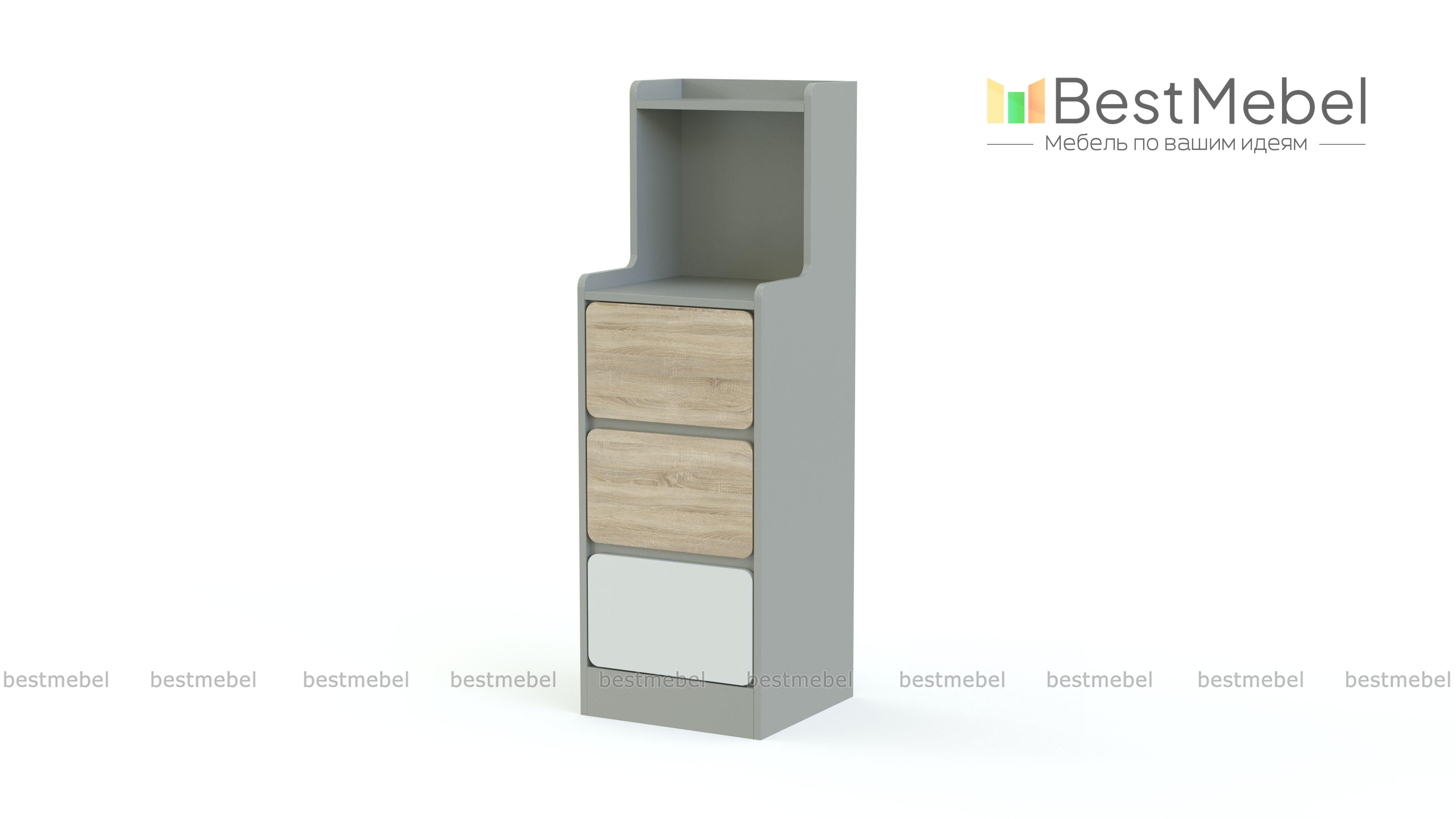 Тумба прикроватная Палитра 1 BMS гармонично впишется в современный спальный интерьер и разместит под рукой все необходимые мелочи, книги, уходовые средства и предметы декора. Высокая узкая тумба оборудована тремя выдвижными ящиками, нишей и открытой полочкой с плавно вырезанными боковинами. Корпус светлого древесного оттенка дополняют фасады серого и белого цвета. Купить тумбу прикроватную Палитра 1 BMS приглашаем к нам в интернет-магазин по доступной цене.