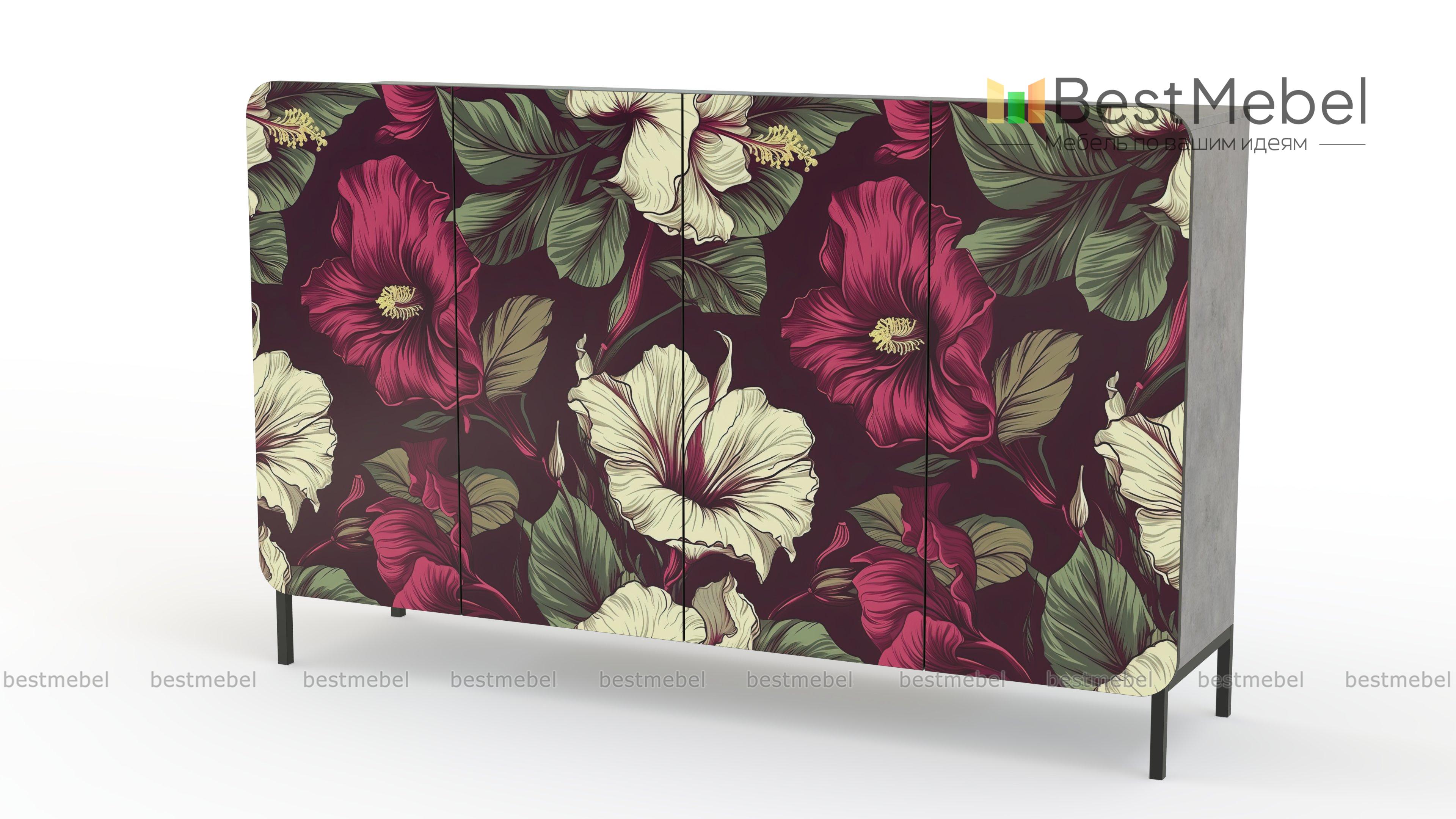 Тумба Риф 16 BMS станет центральным элементом дизайна современной спальни или гостиной и местом хранения большого количества вещей. Закругленный и чуть выступающий за периметр фасад тумбы украшен эффектным цветочным рисунком. Крупногабаритная конструкция с четырьмя распашными дверцами и полками выглядит легкой благодаря высоким тонким ножкам из окрашенного металла. Купить тумбу Риф 16 BMS с выбором оптимальных размеров и цветового решения вы сможете в нашем интернет-магазине.