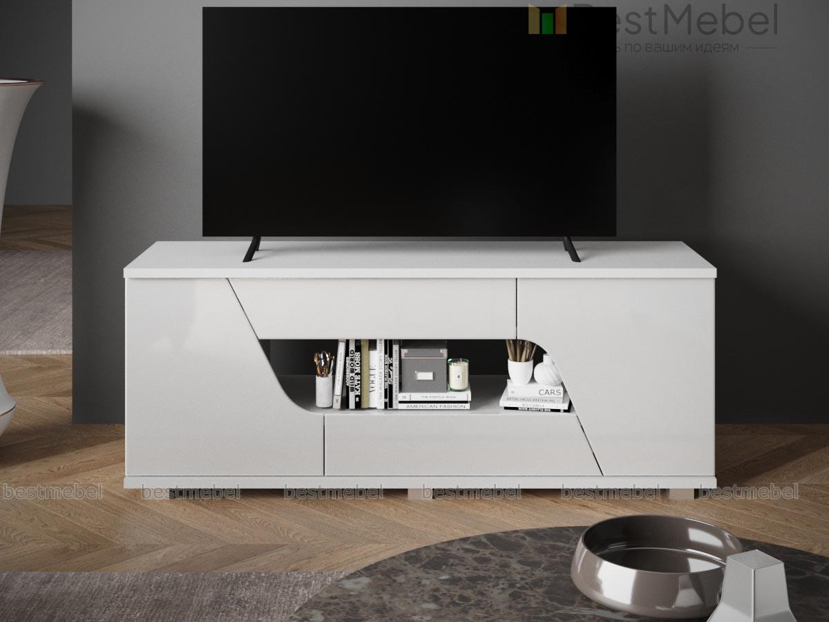 Тумба ТВ тип 5 Diamond BMS – роскошная современная модель в эффектном и износостойком белом глянце. Функциональная тумба оборудована не только просторной столешницей под ТВ, но и практичной комбинацией из двух выдвижных ящиков, распашных отделений и центральной ниши. Необычно вырезанные фасады ящиков с эргономичной системой открывания складываются в единую композицию. Купить тумбу ТВ тип 5 Diamond BMS вы сможете в нашем интернет-магазине по отличной цене.