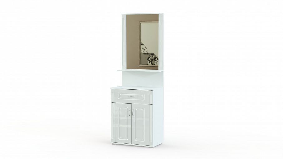 Тумба Виторе 2 BMS оборудована выдвижным ящиком и распашным отделением для более габаритных вещей, а на столешнице закреплено зеркало с полочкой для косметики и других мелочей. Фасад тумбы выполнен в износостойком светлом глянце, придавая конструкции визуальную невесомость. Завершают элегантный дизайн ручки-скобы и классическая фрезеровка. Купить тумбу Виторе 2 BMS для обустройства входной зоны или спального интерьера вы сможете в нашем интернет-магазине.
