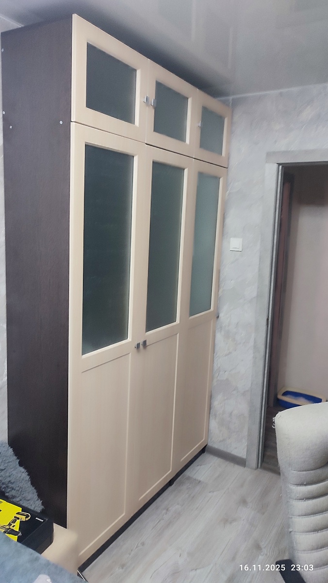 Нужен был шкаф с определенными нестандартными размерами ещё и зеркало на боковину шкафа, не могли долго найти, то размеры такие не делают, то зеркало не будет того размера, что нужно, заказали в bestmebelshop.ru,  все пришло в точности как и ожидали, от заказа до сборки все понравилось, сделали быстро, вся фурнитура на месте, понятная схема сборки, цена-качество на высоте, учли все пожелания и размеры, что для нас было очень важно, прислали эскиз для согласования, легко было уточнять все детали, не было такого, что сделала заказ и продавец пропал! Теперь рекомендую всем знакомымЗаказ 00000345040Шкаф распашной Айва 13 BMS (2500х2650х600)