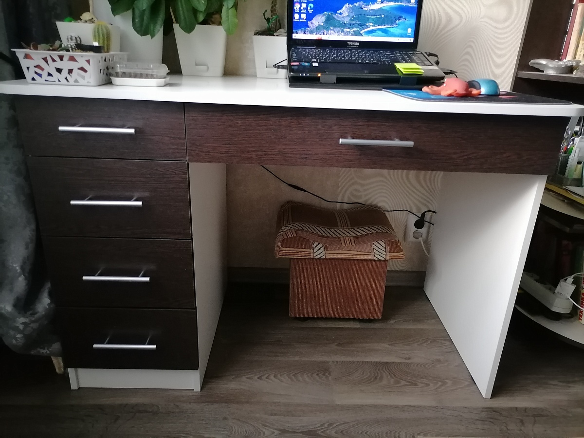 Вступление оставлю в отзыве к этому столу, но понятно что оно относится к обоим заказам (второй был компьютерный стол Форт-1 BMS) Часть написанного будет дублирована к второму столу.Сайт чудесный и работа менеджеров впечатляет - оформил заказ, на этапе перевода денег (не успел перевести) поступил звонок для уточнения деталей заказа/срока готовности и т.д. Мы с супругой были приятно удивлены! Обычно мало того что подождать надо, так и самостоятельно добиваться ответов. По поводу возможностей для пользователя изменить необходимые параметры мебели под себя - это как по мне основная фишка компании BestMebel. Заказ №1125132 оба стола были собраны 13.01.2025 и вот вам опыт использования:Превосходный стол, в сборке прост. Приобретался для супруги и он полностью удовлетворяет все её потребности. Большой выдвижной ящик под основой столешницы - просторный и в него прекрасно помещаются картины для творчества (для удобного хранения и быстрого доступа). Верх шкафа облюбовал кот, потому заставлять его есть смыл только тем у кого нет домашних любимцев стремящихся побыть "На высоте".Нюансы в сборке:- Есть небольшой зазор в "Столбике" с права, нам не критично, но зная многих людей которые из-за потёртостей любят хай поднимать - за такой изъян явно были бы в ярости.- Основная стола, большой ящик под столешницей - малость неприятно что отверстия под крепления были просверлены были ближе чем нужно из-а чего ящик имел зазор с основой стола в сантиметра 2 (просто просверлил подальше и всё стало "заподлицо" закрываться).- Не нюанс, а очевидное замечание о приятном. Петли к выше описанному большому ящику на порядок лучше чем стандартные. Имеют приятный ход и много заводской смазки.Как итог я буду заказывать мебель тут и дальше и уже рекомендовал своим близким.