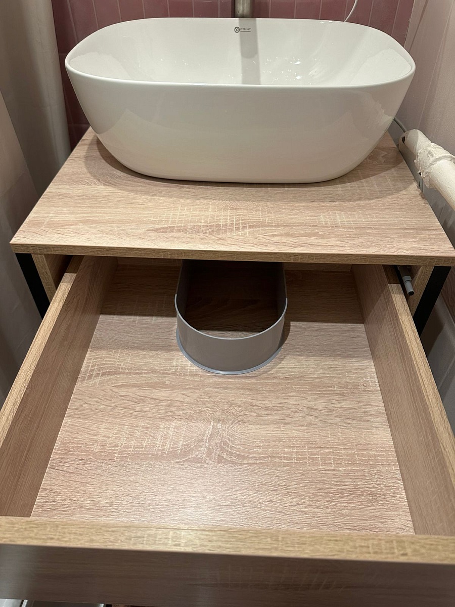 Заказ 00000913661. Посчастливилось найти тумбу нужного размера и подходящей стилистики. Удобно, что тумбу изготовили по индивидуальным меркам и она идеально подошла в нашу ванную. Самое замечательное, что и раковину заказали здесь же, подходящую. Девушка из кол-центра помогла с выбором и проконсультировала по размерам. Качественно, быстро и бюджетно.Рекомендую к покупке.