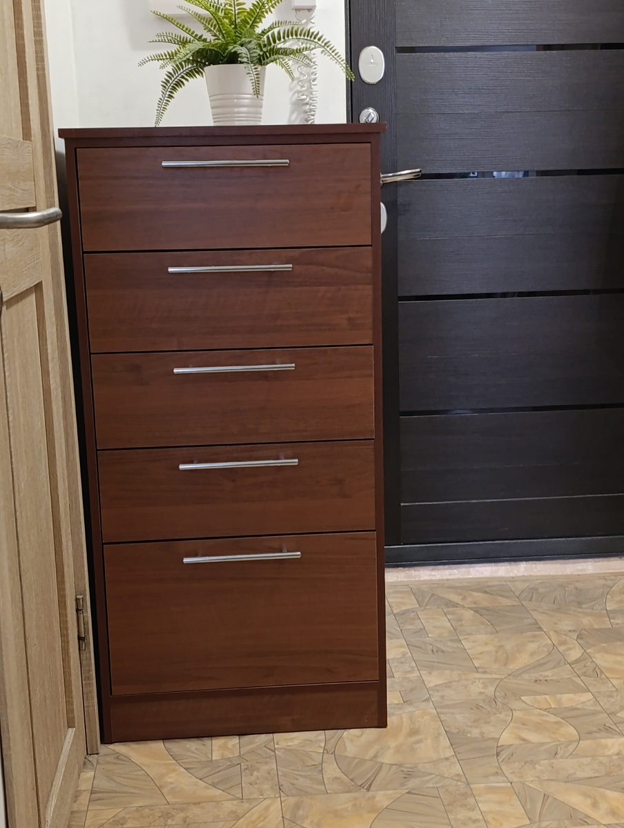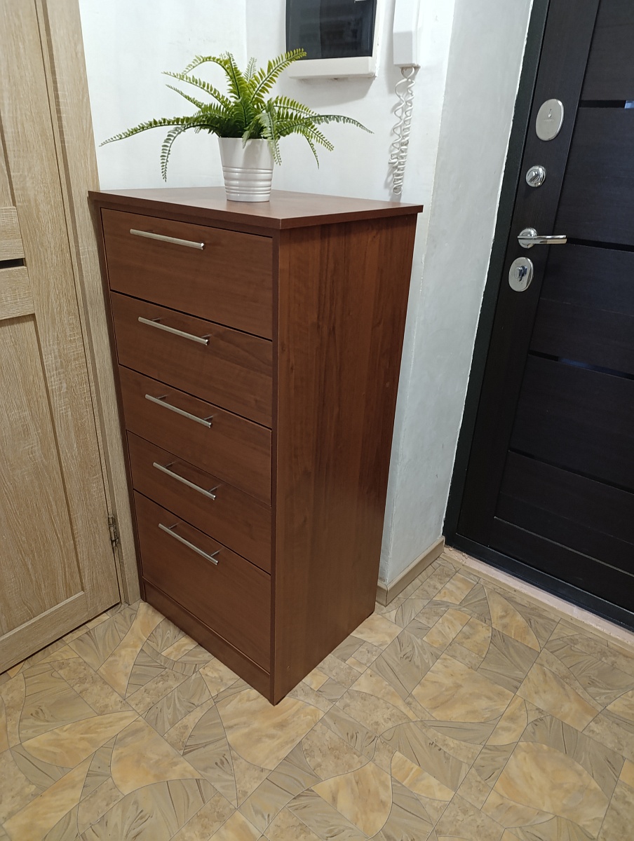 Купили комод Ричард 0,5 Р ВМS в узкую прихожую. Очень удобный, вместительные ящики, симпатично смотрится. Подобрали по цвету фасад, поменяли по своим параметрам размер комода. Качество понравилось, брак отсутствует. Приятные сотрудники, оперативно созвонились при заказе, доставили в срок. Заказ 1131346 от 20.01.2025г.
