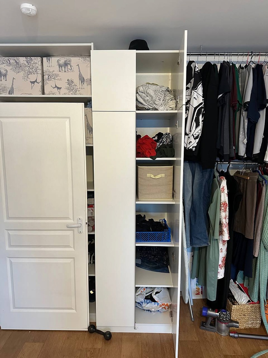 Заказ 00000903842, изделие ЭСКИЗ Шкаф распашной Остин Лайт 2 BMS (700х2400х600)Идеальный шкаф. В дополнение к стелажу был необходим узкий распашной шкаф. Сборка лёгкая, сделали быстро и как обычно качественно, доставка прямо в дом. Собрал примерно за час, поставил, загрузил и забыл. Особенно нравится возможность изготовить по индивидуальным размерам.