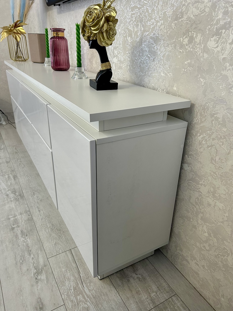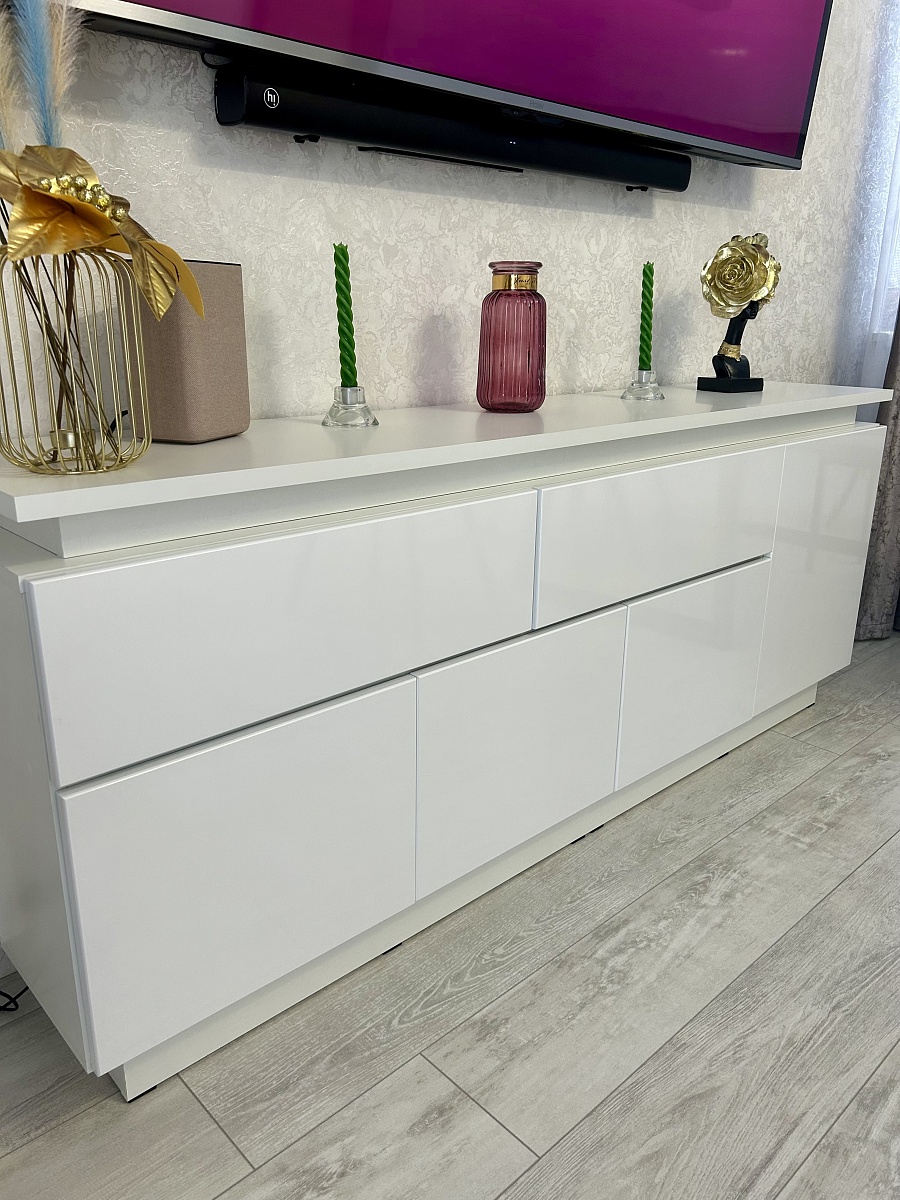Заказ 00000882821 (№1101212),Очень рада, что обратилась в компанию «BestMebel» за Комодом Infinity Блеск 10 BMS (1750х710х350).Искала тумбу под телевизор, но запрос был на полноценный комод для домашних нужд. Тяжело было найти тумбу шириной от 170 см и высотой от 70 см, в БэстМебель огромный Плюс в том, что профессионалы изготовят мебель под Ваш размер!Заказала, изготовили быстро, привезли до адреса за город, всё в отличном состоянии, доводчики в поряде. Инструкция, конечно, целый квест, но разобрались)))Идеально вписался в мой интерьер. Классно, что под разное время года он служит мне еще отличной площадкой для создания уюта в доме.В общем, советую покупателям, ведь в «бэстмебель» приятная бонусная система, удобный сайт и огромный выбор мебели (а также цветов, материалов, фурнитуры и т.п.) под любой ваш запрос!