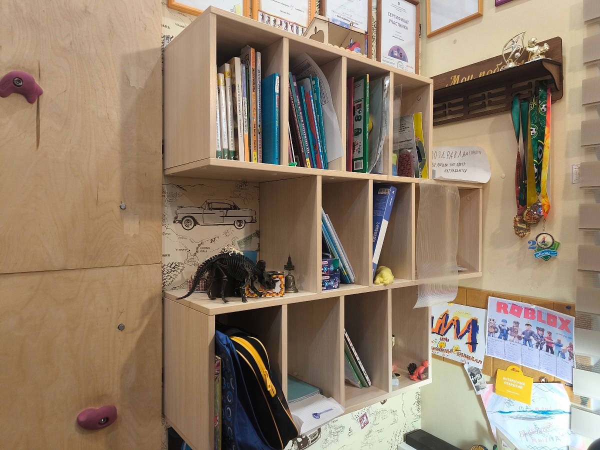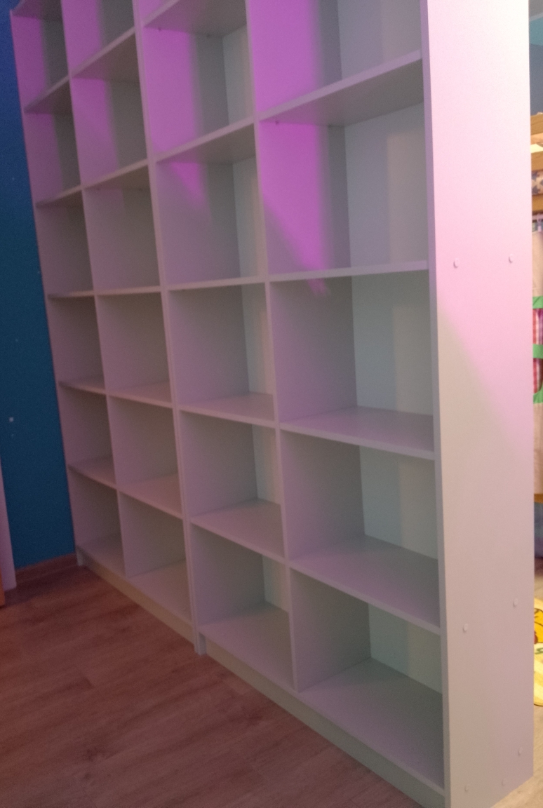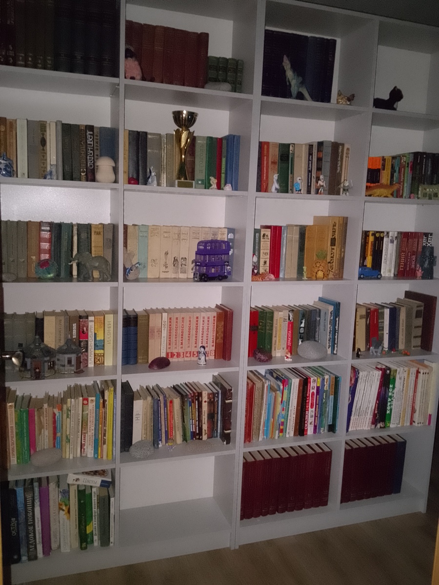 Хороший стеллаж. Берём уже второй такой. Благодаря индивидуальным размерам можно сделать любую высоту полок для любых книг. Покупкой довольны (Заказ №717362)