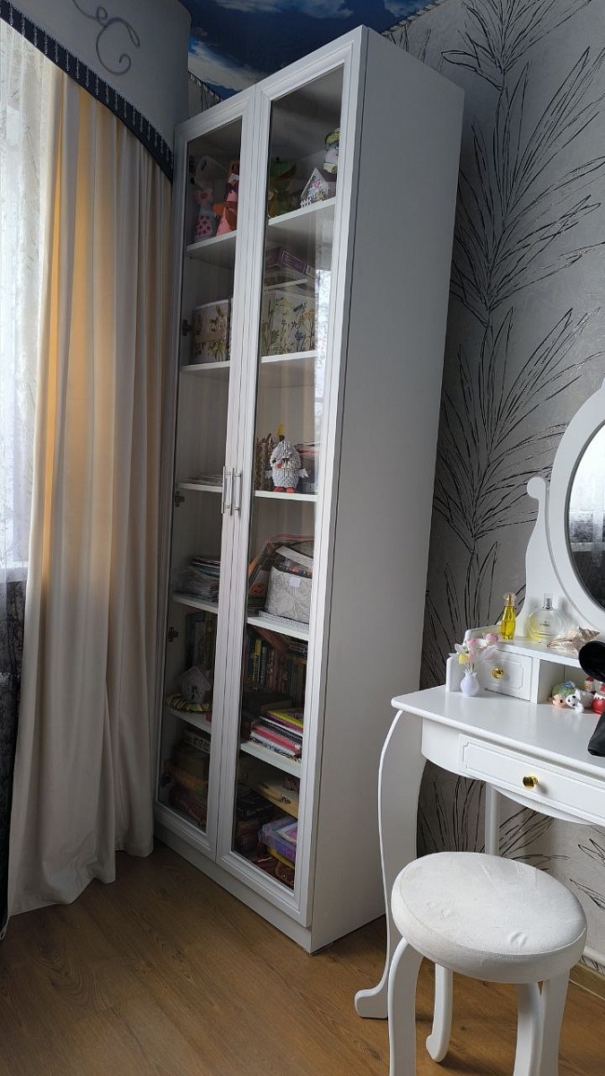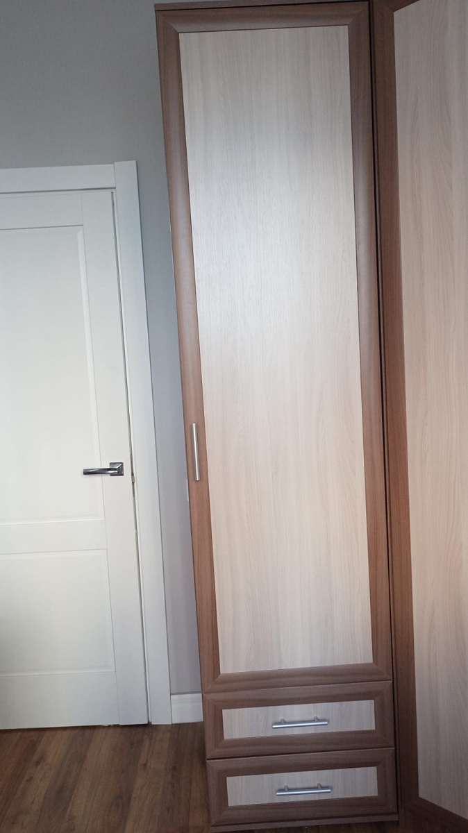 Заказ 00000722924, изделие ЭСКИЗ Шкаф Минерва BMS (550х2300х600)Решили дополнить шкаф еще одним пеналом, заказали его по своим размерам. Идеально совпал цвет и размеры. Выглядит так, как будто все элементы шкафа заказывали в одном лоте. Предусмотрели 2 выдвижных ящик. Сделали расстояние между полками 30 см, чтобы эффективнее использовать пространство. Радует то, что по доступным ценам можно делать мебель той формы и цвета, которая тебе нужна, а не выбирать только из ограниченных образцов