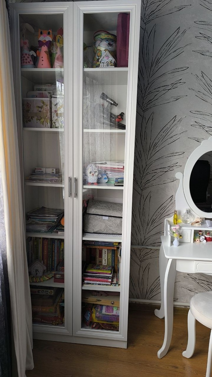 Книжный шкаф Карлос 006 BMS (заказ 00000774192) выглядит стильно и функционально. Основное преимущество этого шкафа — вместительные полки за стеклянными дверцами, которые защищают книги и декор от пыли, сохраняя их в хорошем состоянии. В нем можно удобно хранить не только книги, но и разнообразные декоративные элементы, такие как фигурки и сувениры, что видно на фото.Качество исполнения также не вызывает вопросов: двери хорошо прилегают, петли и ручки выглядят надежно. Прозрачные стеклянные вставки придают легкость конструкции и позволяют видеть содержимое, что удобно для быстрого поиска нужной вещи.Идеальный выбор для тех, кто ценит сочетание практичности и эстетики в интерьере.