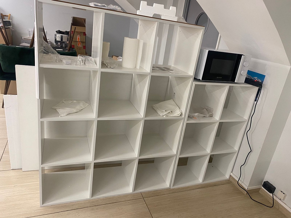 аказ 00000770741 и Заказ 00000770740Стеллаж Каллакс Kallax 2заказывали дизайнеры в офис, хорошо вписались в интерьер. Не ИКЕЯ, но качество нормальное. К таким большим стеллажам желательно добавить в комплекте ножки, даже не высокие подойдут, т.к получается нижняя часть полностью стоит на полу, накладки не решат проблему если что то разлить на пол и т.д