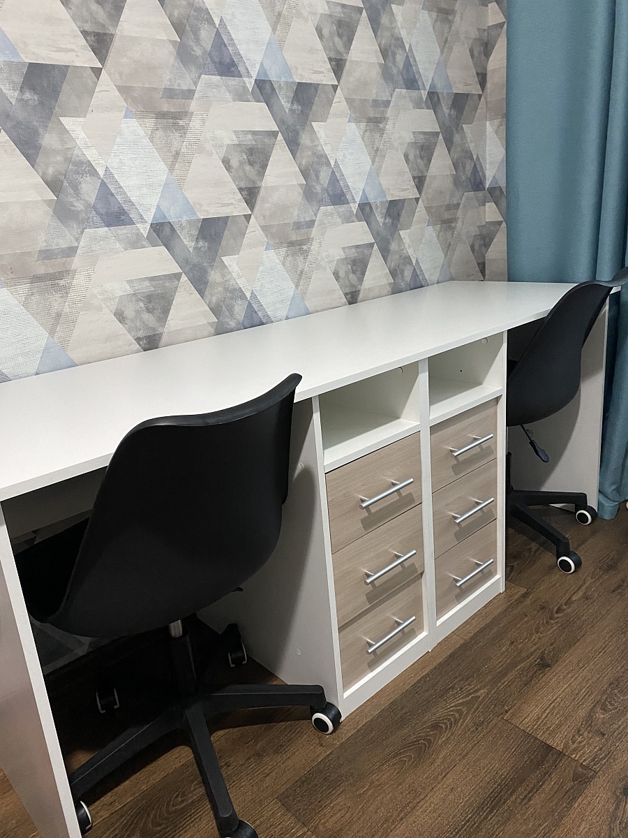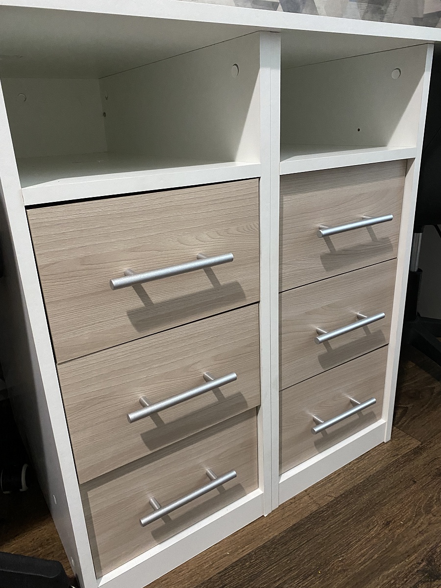 Стол визуально совпал с картинкой в голове, ожидала только шуфляды пошире, и почему-то при сборке 4 шуфляды заходят глубже, а две на уровне с тумбой, причина непонятна, буду рада если подскажите в чем причина