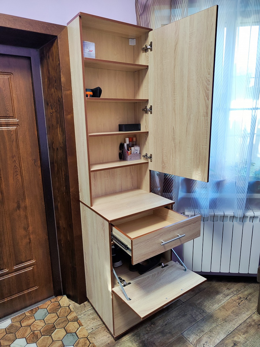 Надо было укомплектовать арендную студию небольшой прихожей. Остановился на этом варианте. Согласовали небольшие изменения быстро, привезли очень быстро, собрал сам. Всё устраивает !