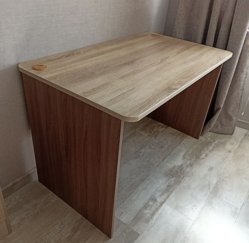 Хороший стол, простой в сборке - НО категорически рекомендую выбирать скруглённые углы столешницы (вас спросят, все или передние только) и саму столешницу потолще (есть вариант 22 мм). На фото корпус ясень шимо тёмный, столешница дуб сонома.